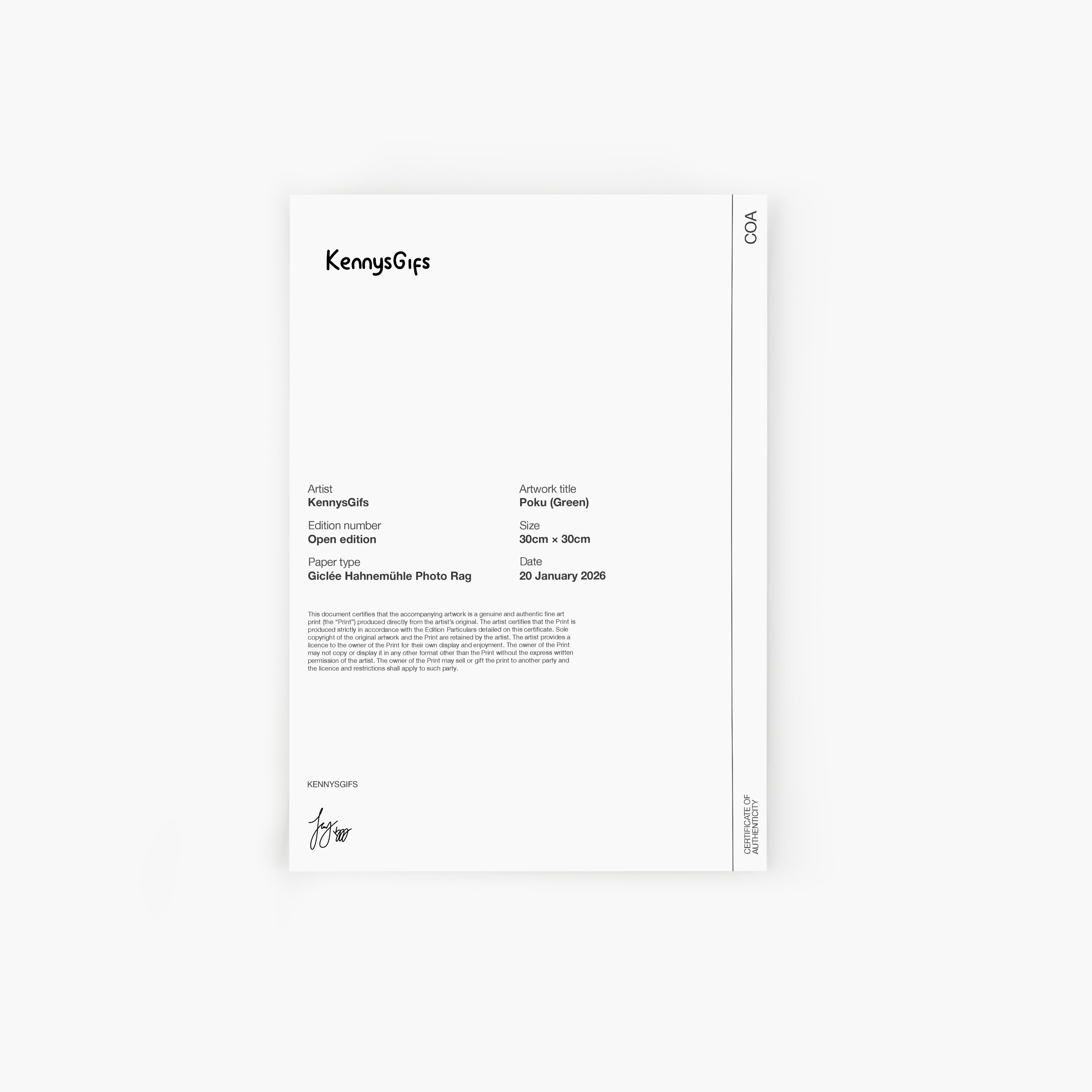 - Presented on acid-free, archival Photorag Giclée paper from Hahnemühle